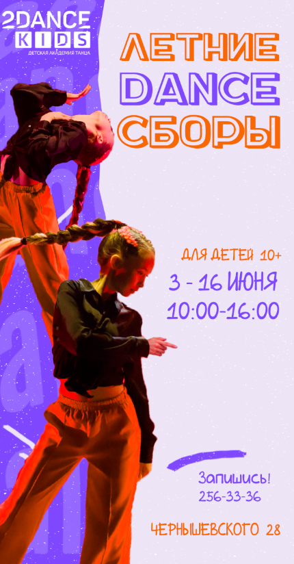 Во время сборов для детей разрабатывается программа полуторачасовых мастер-классов 2 раза в день. Мнодество направлений: джаз-фанк, хип-хоп, контемп, брейкинг и др. Учебная лаборатория "Я-постановщик", где ребята научатся искусству хореографа.